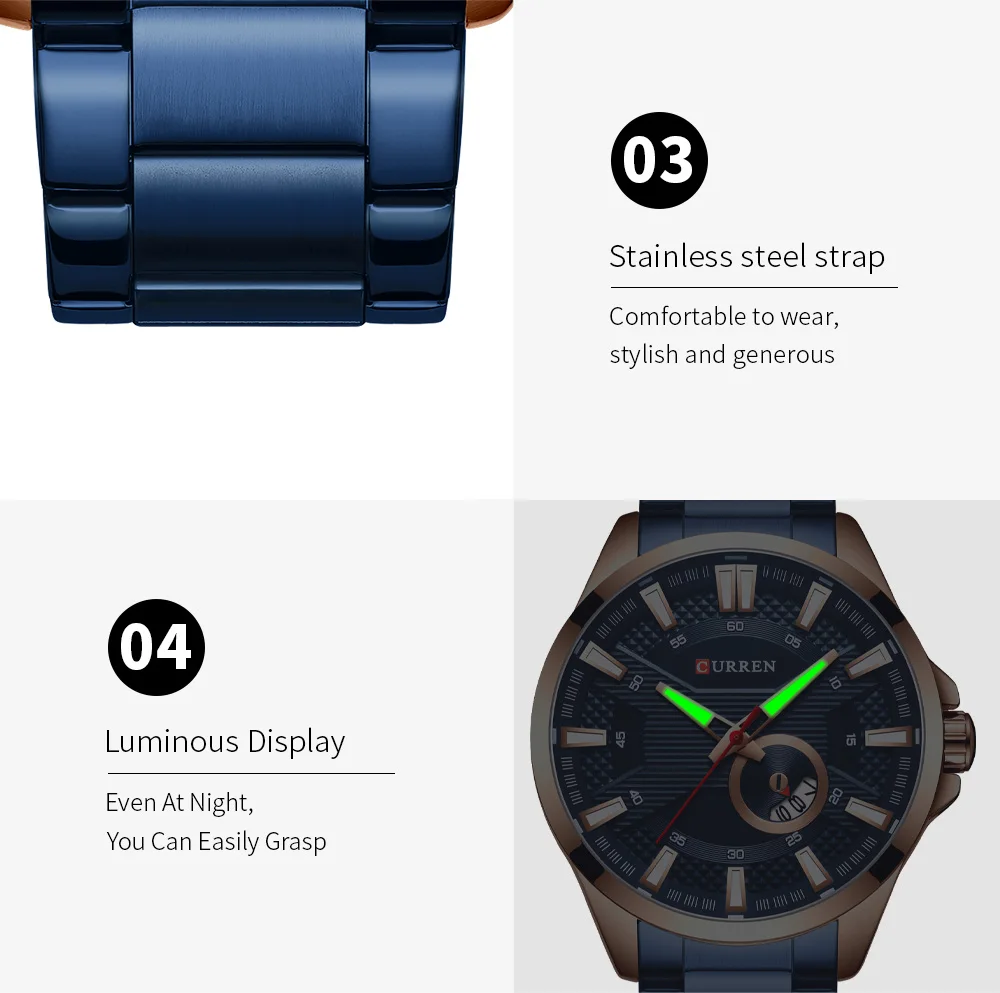 CURREN Business Quartz Watch for Men Luxury Watch Men’s Brand Stainless Steel Wristwatch Relogio Masculino Waterproof Clock